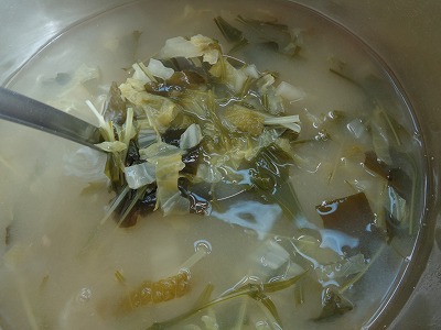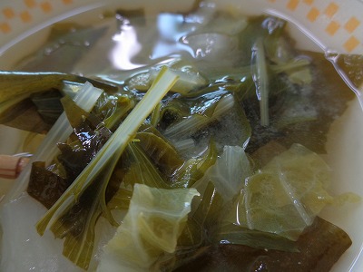 ☆ 白菜と、水菜、わかめの味噌汁です。昨日は白みそ仕立ての味噌汁とは色も香りも違います。