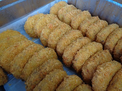 油で揚げて調理するコロッケは、サクサクの食感です。