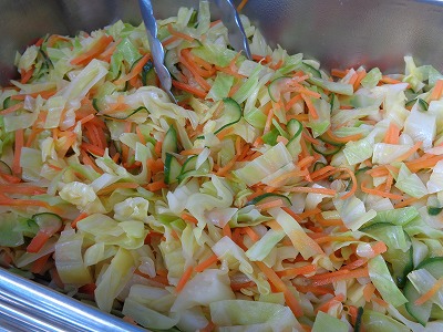 ☆ キャベツのサラダは、きゅうり、人参を合わせました。