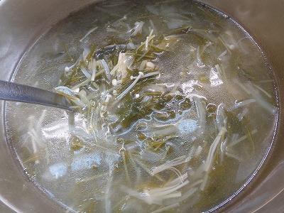 ☆ 豆腐と水菜のスープです。たまねぎ、えのきも入っています。