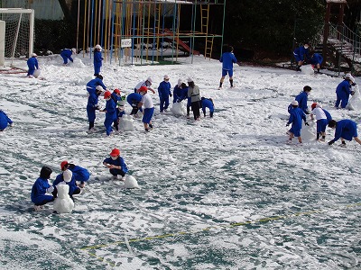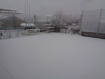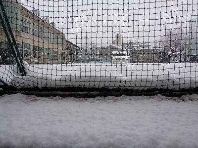 10時頃の運動場。こんなに積雪があります。