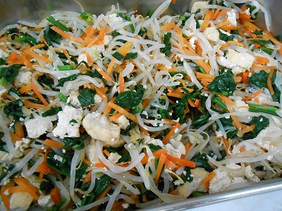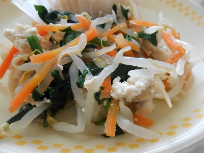 ☆ ほうれん草やもやし人参、厚揚げの野菜の和え物です。
