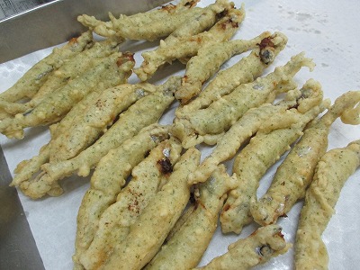 ・子持ちシシャモの磯部揚げ