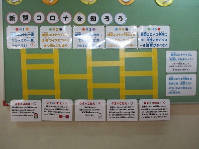 保健室前の掲示が「コロナについて知ろう」に変わりました。