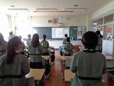 子ども達は、それぞれに心を落ち着けて自分を見つめ、無の境地に至る座禅をイメージして、自分にできることを考えて、礼拝の始まりを静かに待っています。これからも、一人ひとりが今の姿勢を心がけていきます。