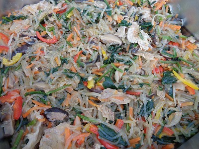 ☆ チャプチェは、さつまいものデンプンから作られた「タンミョン」という韓国の春雨を使って作る伝統的な家庭料理です。