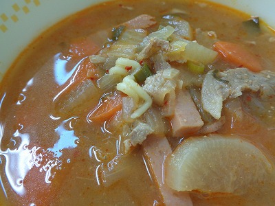 朝鮮戦争以降、アメリカ軍から流れてきたスパムやソーセージをキムチチゲに入れたのが始まりで、若い兵士の中で作られたそうです。