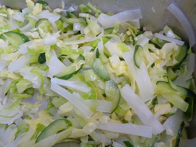 ☆ サラダに使われている野菜は、大根、きゅうり、キャベツです。