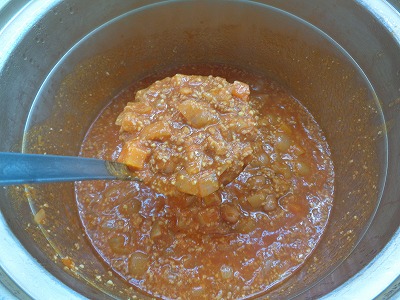 トマトの酸味がまろやかになるように、時間をかけて煮こんでいます。