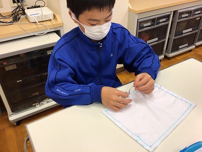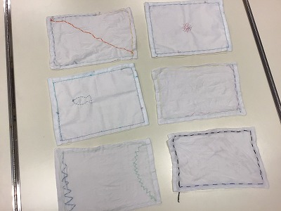 ぬい始めやぬい終わりの処理は、玉結びや玉どめが残ったままになりましたが、限られた時間の中で、カラフルなふきんが作り上げられました。