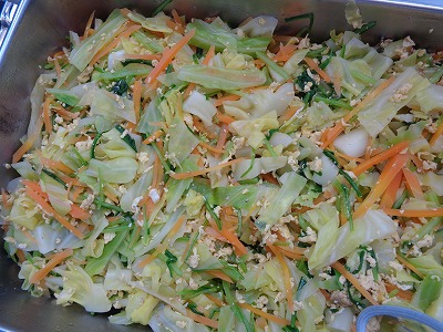 ☆ 壬生菜、キャベツ、人参、炒り卵の胡麻あえです。