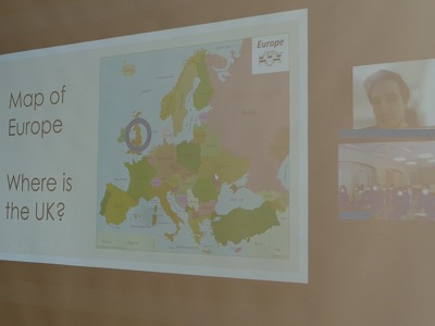 日本とイギリスを比較しながら、イギリスの国土・人口・高い山などの概要を知り、自分の想像との違いに、みんなで「え~」と驚いていました。