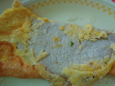 ☆ ポークピカタは、豚肉に塩こしょうで味つけした後、卵をからませて焼いています。