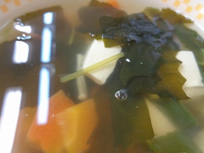 ☆ 豆腐、わかめ、えのき、人参、三つ葉のすまし汁です。