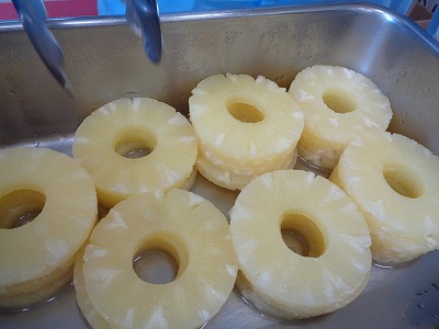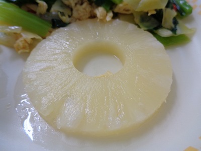 シロップ漬けのパイナップルは、甘酸っぱくて口をさっぱりさせました。