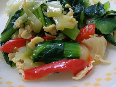 ☆ 小松菜、パプリカ、キャベツの野菜いためです。