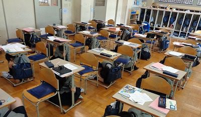 At 9:20, we had an earthquake drill and practiced what to do during an earthquake with the students.