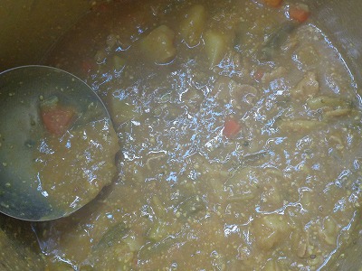 豚バラ肉の油はカレーライスのおいしさをぐんと引き上げてくれます。