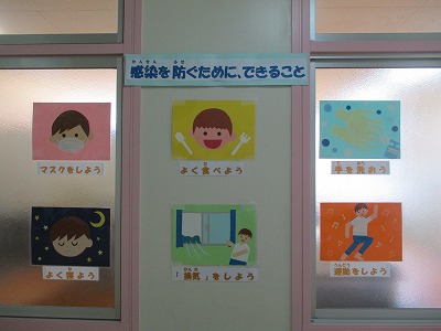 コロナがはやりだしてから、保健室前にはこのような掲示をしています。