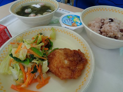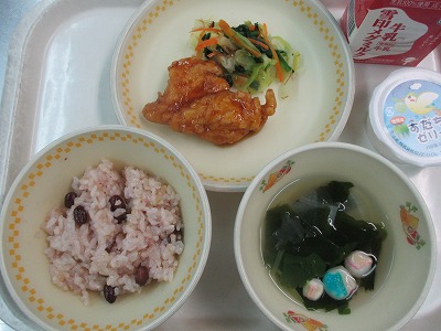 Today's lunch was "Sekihan" or "Red rice". This rice is served on special occasions to