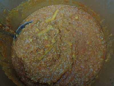☆ ミートソースは人参、玉ねぎ、大豆をミキサーにかけ、豚のひき肉と一緒に煮込んでいます。