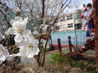 3/17木【Early blooming cherry trees・A chance to run!・給食】