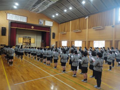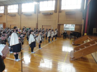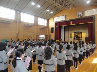 今日は、全校児童 1~5年生が講堂に集合し、礼拝と共に修了式を行いました。