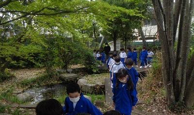 最後の残り時間に、運動場・ビオトープの探検に行きました。
