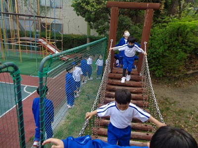 つり橋も渡ってみました。ゆらさずに渡る忍者渡りです。
