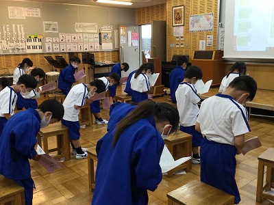 声が途切れないように一生懸命取り組んでくれました。水曜日の礼拝では、上級生と一緒にこの2曲が歌えますね。