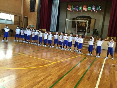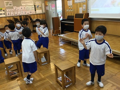 最後は、体育館で“わははたいそう”の練習です。先生を頼らず、1年キッズだけで歌って、体操風に踊れるようになってきました。