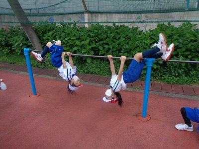 登り棒も鉄棒も、難しくても果敢にチャレンジしています。