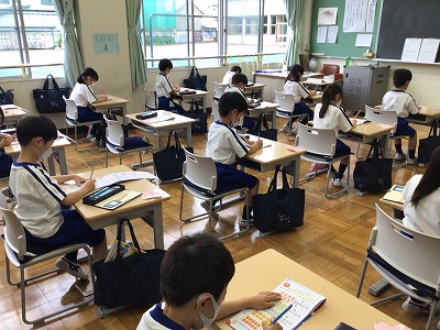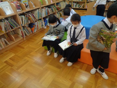 6時間目の国語は、図書室で本の貸し出しです。返却・貸し出しの後、読書タイムを過ごしました。