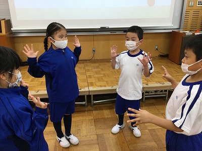 もうひとつの“わらべうた”「おちゃらかほい!」も覚えようと、ペアを作って盛り上がりました。