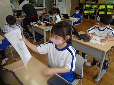 今日は、ロイロノートで撮影した記入済み記録紙を、提出する方法を知りました。生活科で毎回のようにiPadに触れていますが、少しずつ少しずつ覚えています。思い通りにできたときは、子どもたち一人ひとりの笑顔が見られます。