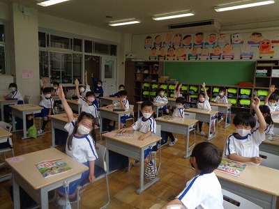 先生ばかりが指示役をするのではなく、子どもたちも手をあげて指示係をしようと意欲旺盛です。