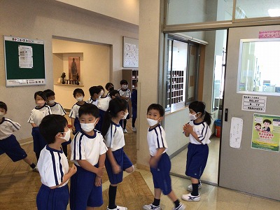 職員室にみんなで入ることは楽しみですが、その前に、職員室の入り方(ごあいさつ・マナー)を確認しました。