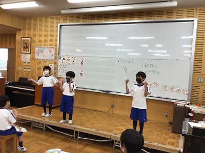 弾くように両手を打ち、“お休み(休符)”を感じて歌う活動は、まだまだ続きます。