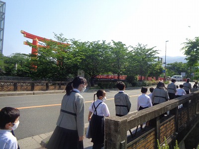 参拝終了後は、清々しい気持ちとともに6年生と一緒に帰校しました。