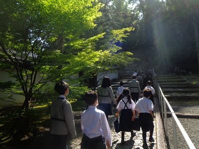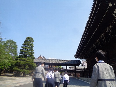 6年生の班長さんと一緒に、知恩院様に向かいました。