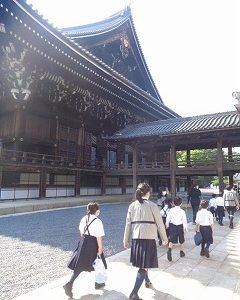 学校から15分ほど歩いて、最後に石段を登り、知恩院の御影堂に到着しました。