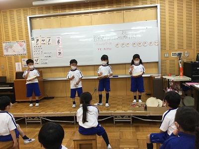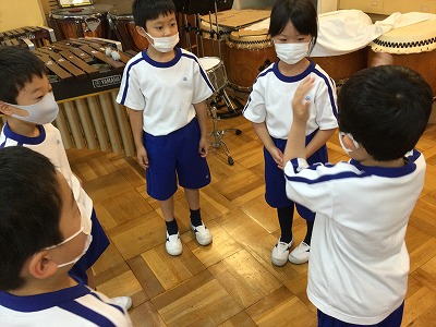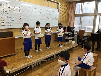前の時間から「♪かたつむり」の歌に合わせて、リズム打ちの学習をしています。