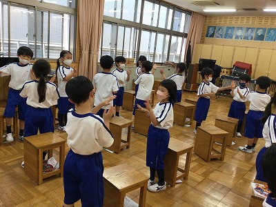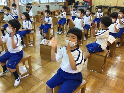「♪かたつむり」の学習で行った“7つ打ち”を生かし、はじめから“のりのり”でリズムを弾ませていました。