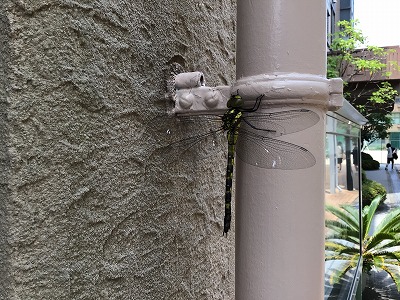 見ると、すぐそばでオニヤンマがいました。羽を乾かしているのでしょうか。