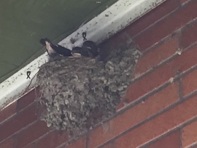 早速、ツバメの巣を見つけましたが、そこは巣だけでした。卵が入っているのでしょうか。
