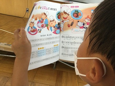 「♪TODAY」を伸びやかな声で歌っています。また、新しい曲「♪わくわくキッチン」の歌詞に注目して歌う時間を過ごしました。