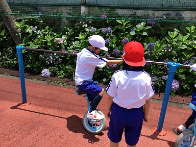 6年生が今日から修学旅行なので、1年生だけの掃除です。ほうき担当の人がテンポ良く、机の人に「1列目どうぞ!」と声をかけ、スムーズに進められていました。
