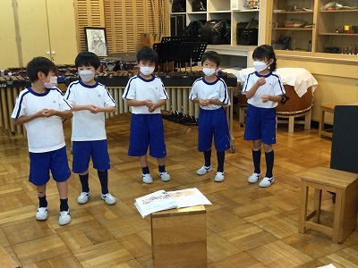 チーム毎に担当を決め、話し合って決まった身ぶりを紹介してもらいました。