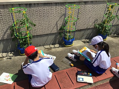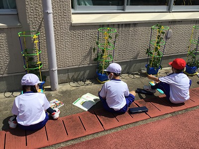 食べ物をあげたり、お掃除をしたりします。調子が悪いと気遣ってあげなければいけません。育てることで、いろいろな気づきがあったようです。