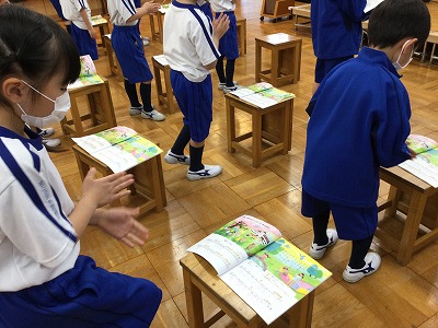 次の時間は、歌とリズムをぴったりと合わせて盛り上がりましょう!